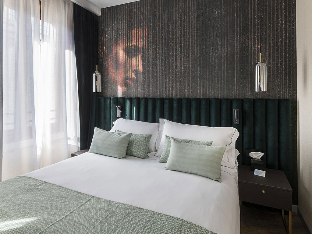 The Prestige rooms are characterized by a careful and exclusive search for modern lines and a touch of luxury: they open up with a large living area equipped with a comfortable sofa bed and refined London Art tapestries with natural tones and a unique design, which make the ideal environment for travellers who wish to enjoy all the comforts of accessible luxury in Milan.