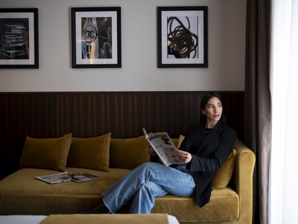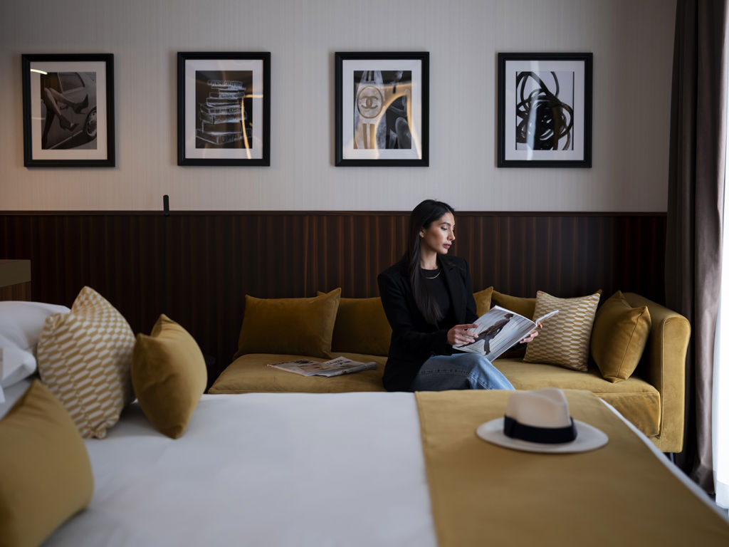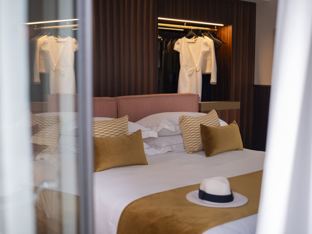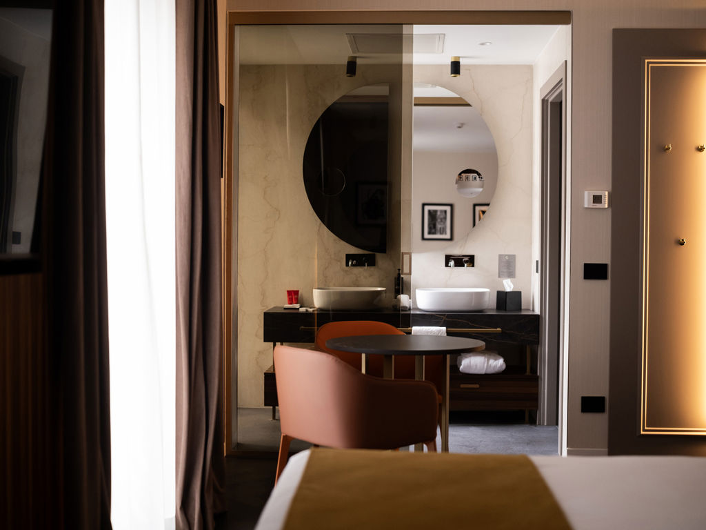 confortevole dormeuse e un bagno finestrato con vetrata sulla camera invitano a momenti di puro relax, con prodotti Frédéric Malle a disposizione.